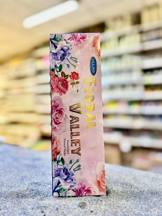 عود شاخه ای اولاس Ullas مدل فلورال ولی ( دره گل) Floral valley خوش بو و معطر، بصورت 1بسته عود شامل20تا 30شاخه و محصول کشور هندوستان (هند).