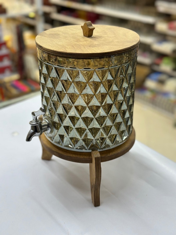 کلمن بلور شیشه ای پایه چوبی شامپاین شطرنجی