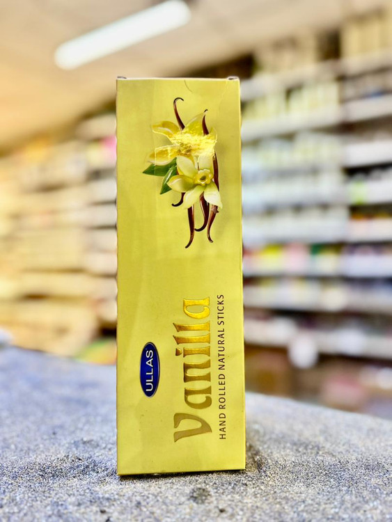 عود شاخه ای اولاس Ullas مدل وانیلا (وانیل) Vanilla خوش بو و معطر، بصورت 1بسته عود شامل 20 تا30 شاخه و محصول کشور هندوستان (هند).