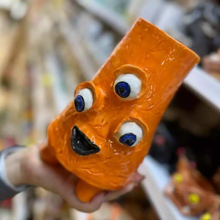 ماگ سرامیکی فانتزی دست ساز طرح ایتالیایی سه چشم نارنجی